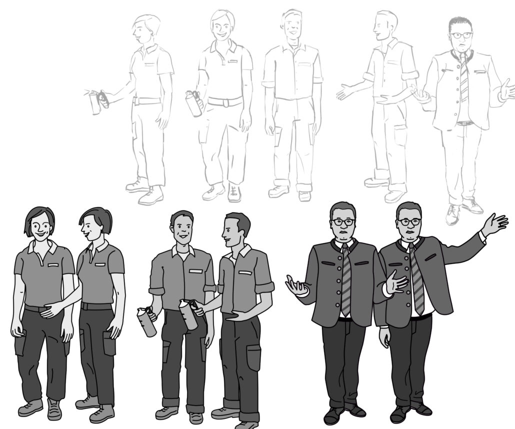 Ich illustriere digital für ein animierbares und in vielen Medien anwendbares Ergebnis: für Webauftritt, Ausstellung, Lehrmaterial, Flipcharts, Powerpoint-Präsentationen