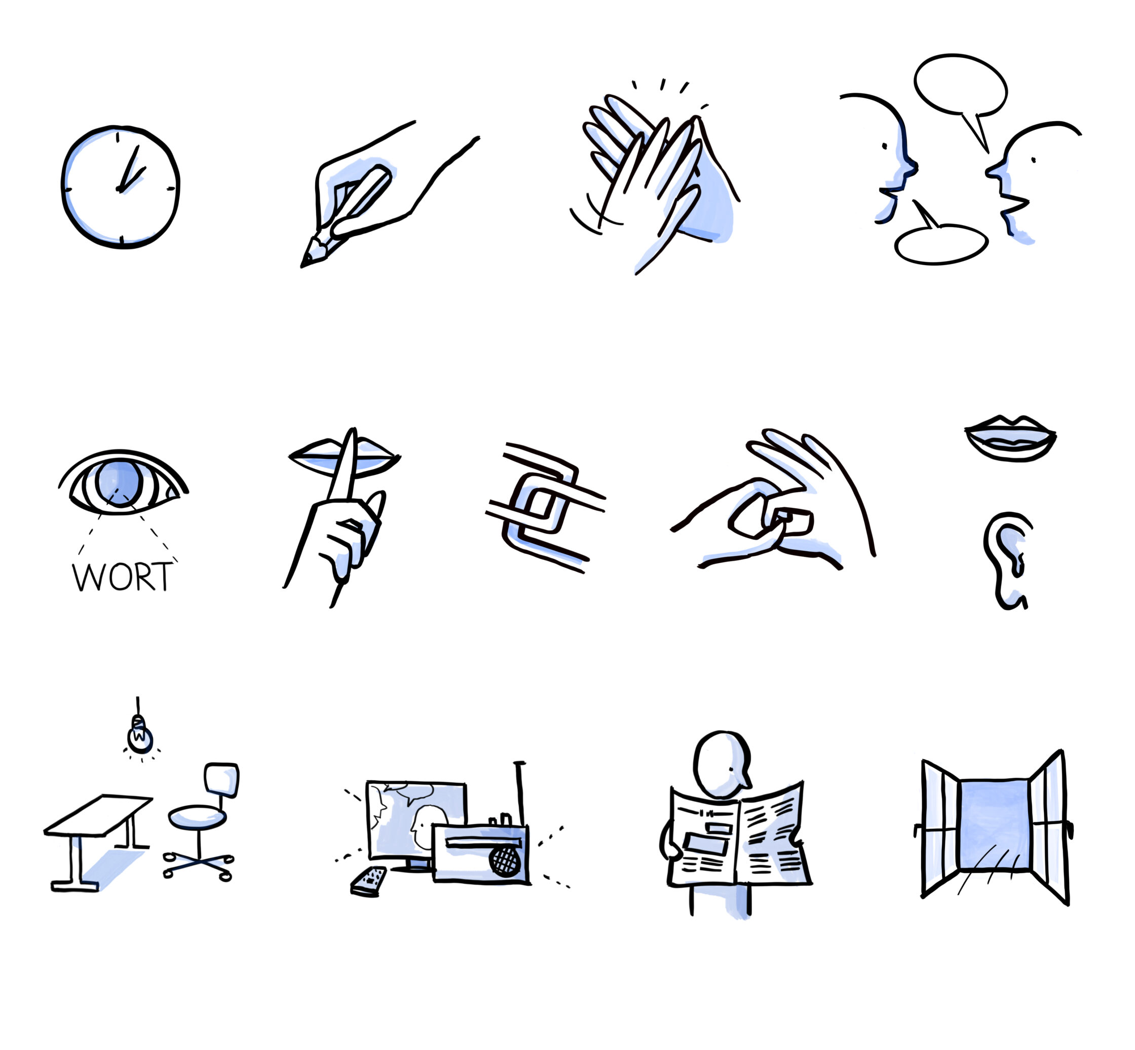 Jeder lernt anders. Und braucht unterschiedliche Hilfestellung. In ihrem Video hat die VHS-Baar hilfreiche Tipps zusammengestellt, um beim Lernen erfolgreich und motiviert am Ball zu bleiben. Ich steuerte Icons bei: Jeder Tipp wird durch die Trainerin gesprochen und gleichzeitig gestisch und bildlich eingeblendet und damit verstärkt.