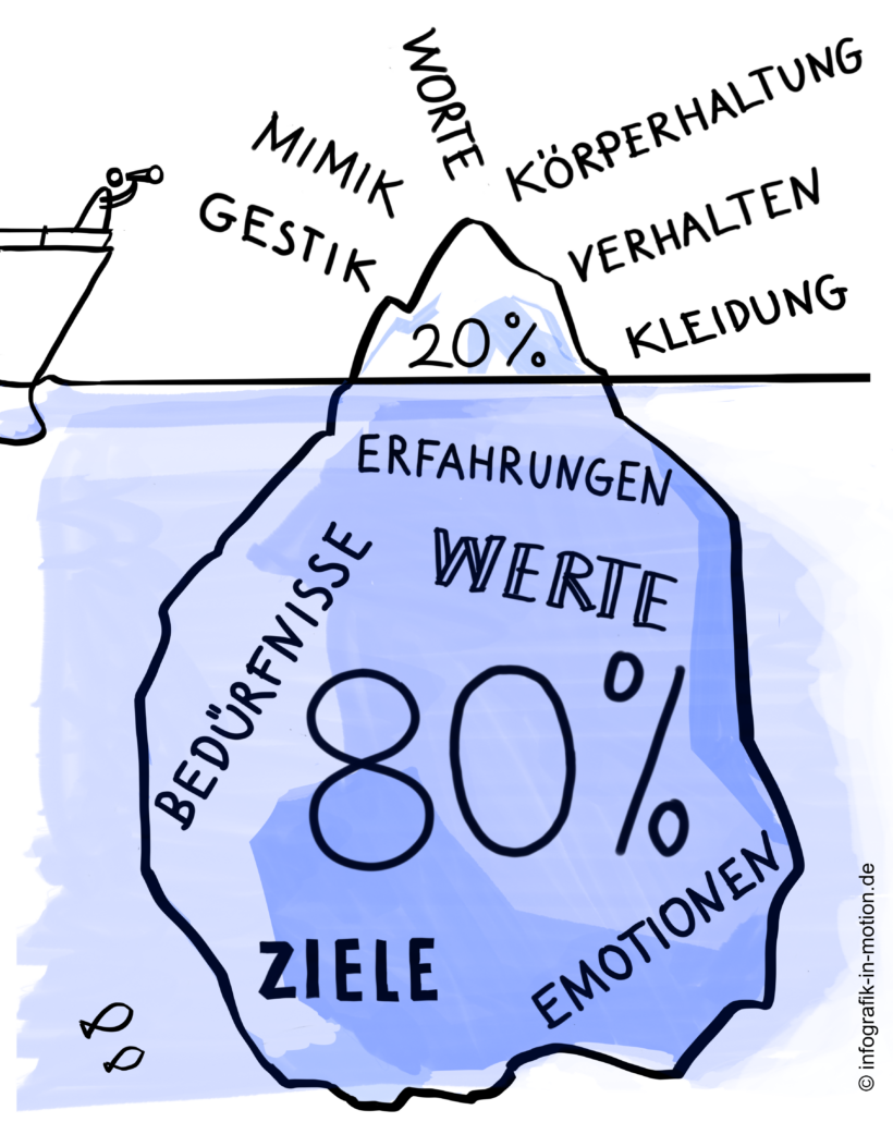 Infografiken bereichern Schulungsunterlagen dank ihres „Talents“ merkfähig zu sein. Sie fassen bildlich zusammen und verdichten, was die Seminarleitenden ausführlich mit Beispiel-Dialogen darlegen. Zusammenhänge werden leichter sichtbar.